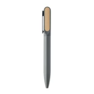 Obrotowy długopis z aluminiowym korpusem z recyklingu, częścią obrotową z recyklingowanego ABS i metalowym klipsem z bambusowym detalem. Niebieski tusz.