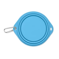 Składana, przenośna silikonowa miska na jedzenie lub picie dla zwierząt z karabińczykiem. Pojemność: 350 ml.