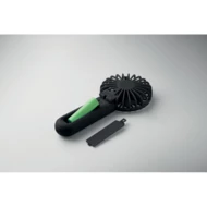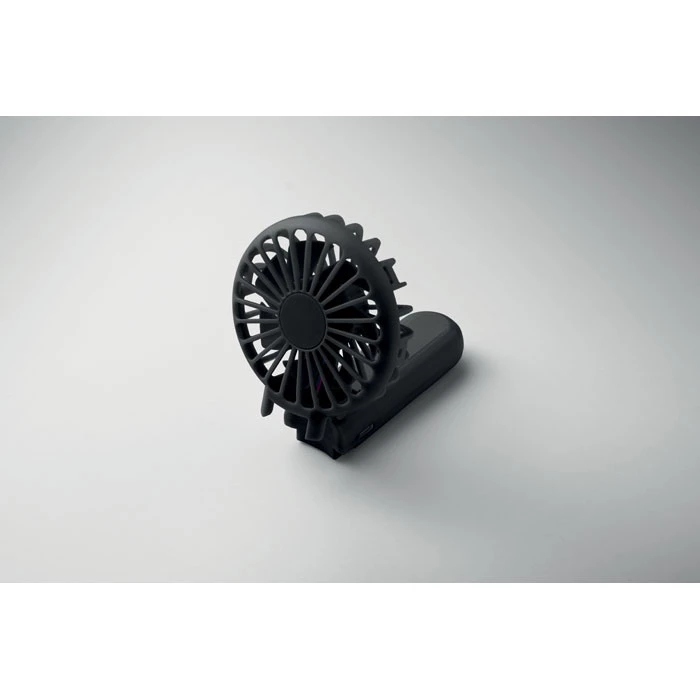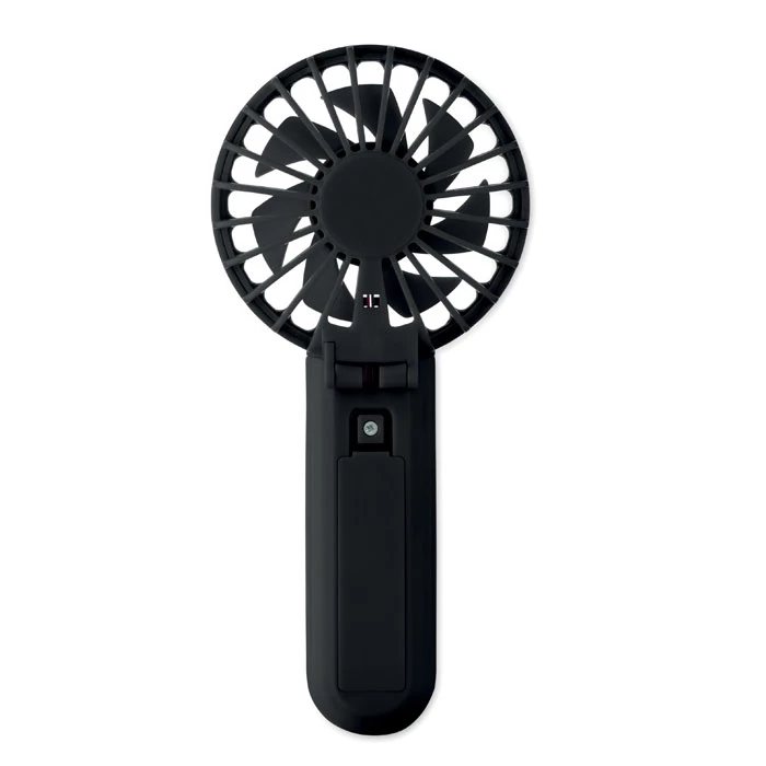 Przenośny, składany wentylator z ABS z 3 ustawieniami prędkości. Może być używany jako wentylator ręczny lub biurkowy. Zawiera 1 wymienną baterię litową 14500 o pojemności 500 mAh.