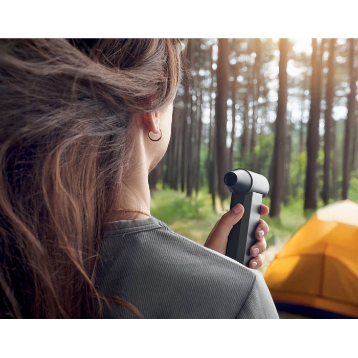 Przenośny turbowentylator z 3 diodami LED i 4 ustawieniami prędkości wiatru do 130000 obr. Prędkość wiatru 35 m/s. Urządzenie może być używane jako odkurzacz, dmuchawa, wentylator lub suszarka do włosów.