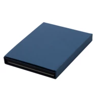 Elegancki składany przybornik w oprawie z kartonu o gramaturze 1200 g/m2. W komplecie: drewniana linijka 15 cm, gumka, długopis, temperówka, 2 ołówki, notes 40 kartkowy w linie o gramaturze 80 g/m2, 25 żółtych karteczek samoprzylepnych (7,5 x 7,5 cm) oraz 25 samoprzylepnych kompletów foliowych zakładek indeksujących po 5 w każdym kolorze. Dodatkowa kieszonka z linijką. Wkład w kolorze niebieskim. Podziałka w centymetrach i calach.