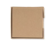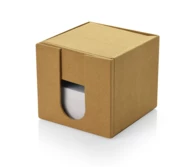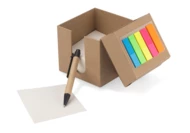 Oryginalny zestaw karteczek w tekturowej kostce - zestaw ten można rozłożyć do formy wygodnego stojaka na biurko. W środku znajduje się zestaw białych karteczek biurowych, pojemnik na artykuły piśmiennicze oraz kolorowe zakładki samoprzylepne z tworzywa PET. Tworzywo PET użyte do produkcji zakładek sprawia, że znacznie lepiej kleją się do kartek i są trwalsze w porównaniu do zakładek papierowych. Jeżeli szukasz funkcjonalnego produktu, który jednocześnie jest ekologiczny to jest to idealny wybór. W zestawie długopis. Znakowanie jest możliwe na opakowaniu.