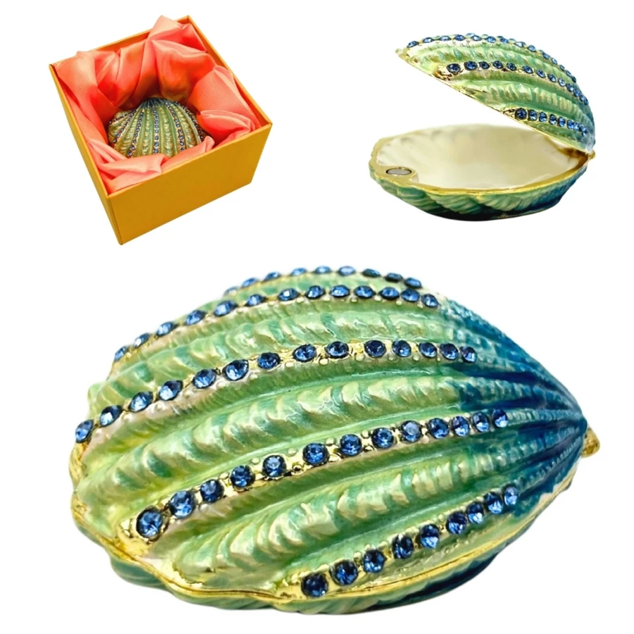 Ekskluzywne Pudełeczko Szkatułka na Biżuterię Zdobione Kryształkami – Muszelka – HX068