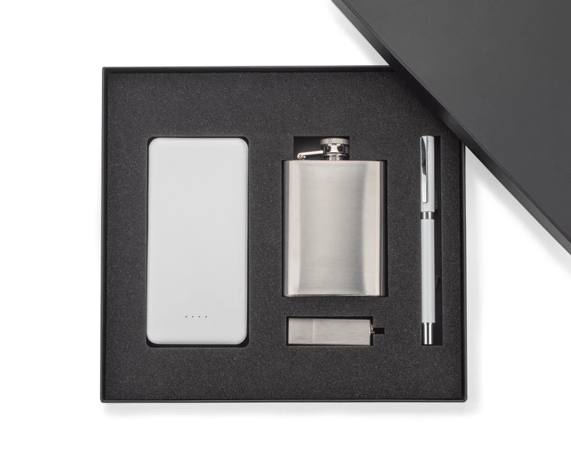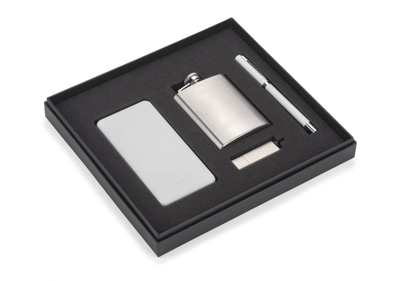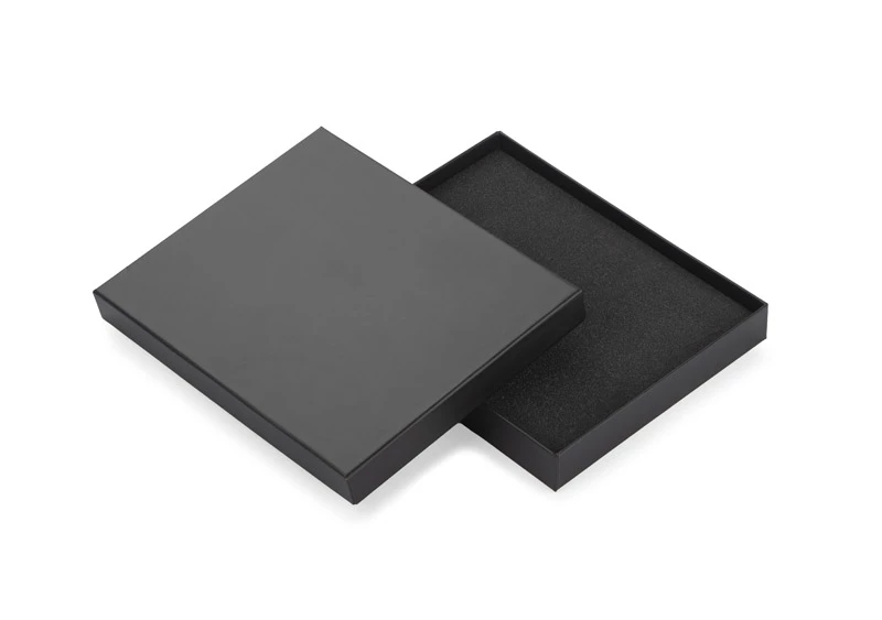 Czarne pudełko wykonane z mocnego, solidnego materiału, matowe dla lepszego efektu. Wewnątrz wyłożone jest pianką, którą można dostosować pod wybrane produkty. Możliwość stworzenia własnego zestawu. Pudełko sprzedawane jest bez wyposażenia. Produkowane w Polsce.
