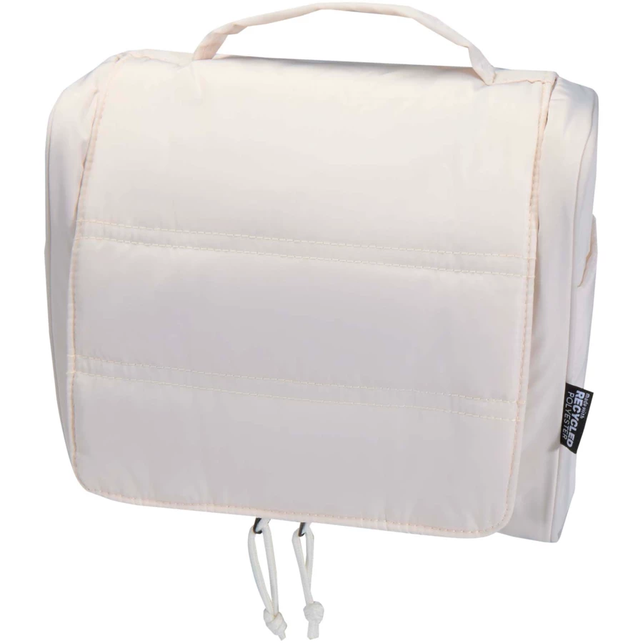 Zawieszana kosmetyczka Puffer została wykonana z materiałów pochodzących z recyklingu z certyfikatem GRS, i wyróżnia się wyjątkowym designem, co zapewnia wygodę użytkowania na co dzień. Ta 8-litrowa kosmetyczka posiada pojemną komorę główną z sześcioma wewnętrznymi kieszeniami, dwie zewnętrzne kieszenie boczne i poręczny haczyk do zawieszenia na drzwiach lub wieszakach na ręczniki. Wyściełany uchwyt ułatwia przenoszenie, a charakterystyczna puchowa wyściółka podkreśla styl i zapewnia ochronę. To lekka i wodoodporna torba, dzięki której Twoje najważniejsze rzeczy będą uporządkowane i bezpieczne, dokądkolwiek podróżujesz.