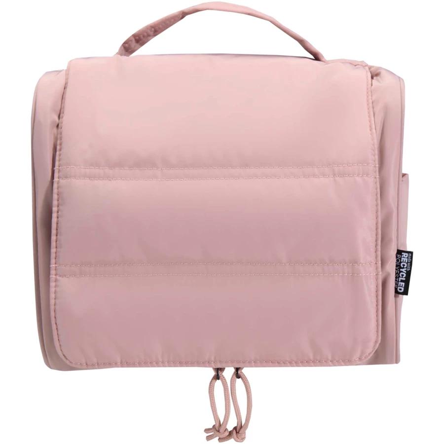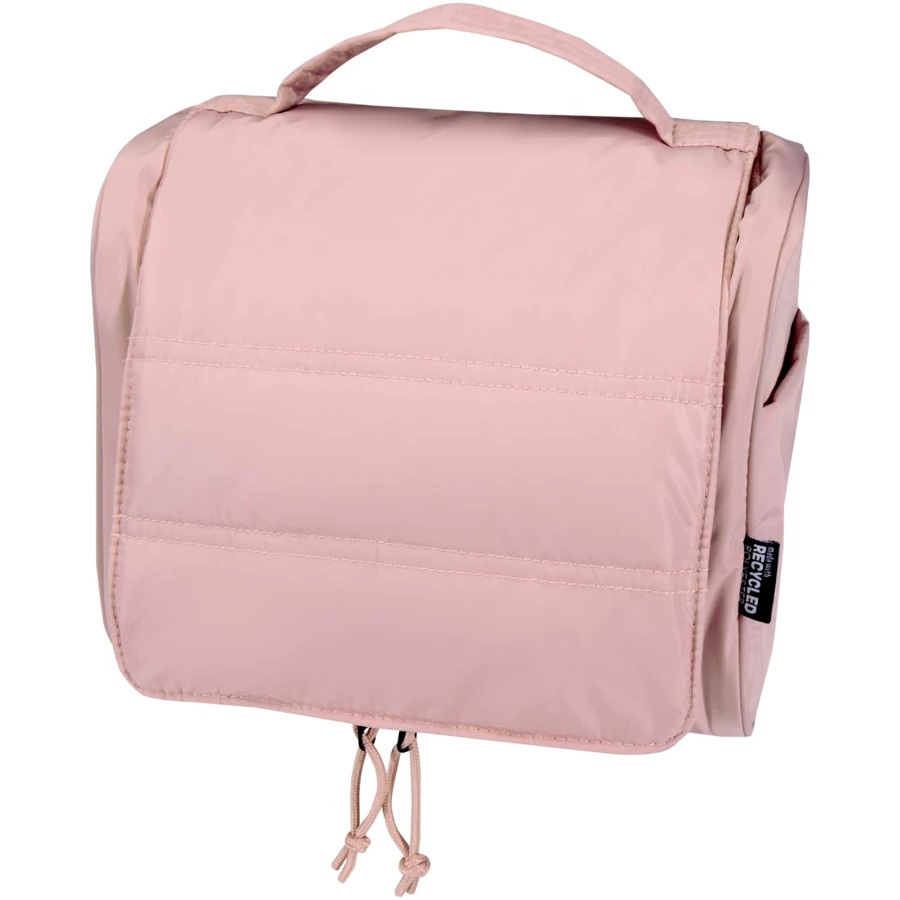 Zawieszana kosmetyczka Puffer została wykonana z materiałów pochodzących z recyklingu z certyfikatem GRS, i wyróżnia się wyjątkowym designem, co zapewnia wygodę użytkowania na co dzień. Ta 8-litrowa kosmetyczka posiada pojemną komorę główną z sześcioma wewnętrznymi kieszeniami, dwie zewnętrzne kieszenie boczne i poręczny haczyk do zawieszenia na drzwiach lub wieszakach na ręczniki. Wyściełany uchwyt ułatwia przenoszenie, a charakterystyczna puchowa wyściółka podkreśla styl i zapewnia ochronę. To lekka i wodoodporna torba, dzięki której Twoje najważniejsze rzeczy będą uporządkowane i bezpieczne, dokądkolwiek podróżujesz.