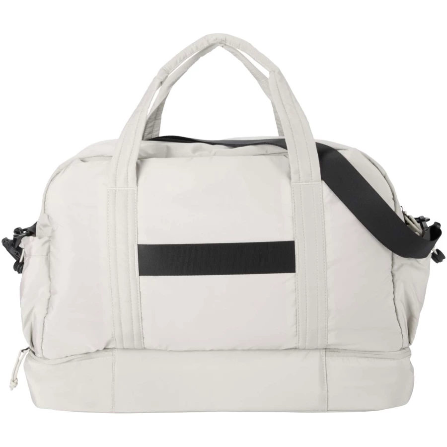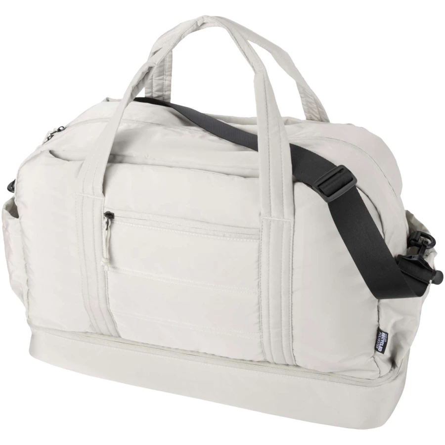 Torba podróżna Puffer łączy w sobie wyjątkowy design z najwyższej jakości materiałami pochodzącymi z recyklingu z certyfikatem GRS, dzięki czemu jest praktyczna i przydaje się na co dzień. Torba ma pojemność 30 litrów dzięki czemu idealnie nadaje się na krótkie wycieczki, na treningi na siłowni lub do codziennego użytku. Torba ta ma dużą, zapinaną na zamek komorę główną na ubrania i sprzęt, dolną komorę wyłożoną izolowaną folią PEVA, umożliwiającą oddzielenie mokrych i suchych rzeczy, a także liczne kieszenie wewnętrzne i zewnętrzne ułatwiające organizację. Pasek na bagaż, regulowany pasek na ramię i uchwyty zapewniają wszechstronne możliwości noszenia. To lekka i wodoodporna torba podróżna zaprojektowana tak, aby bez trudu dopasować się do Twojego stylu życia.