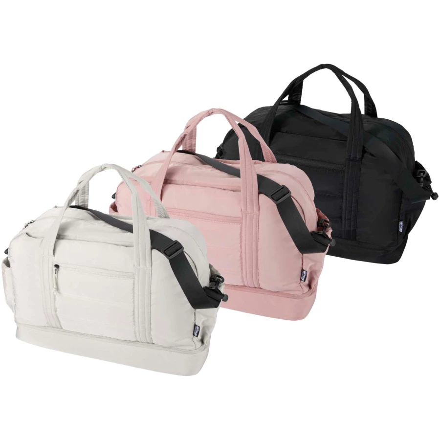 Torba podróżna Puffer łączy w sobie wyjątkowy design z najwyższej jakości materiałami pochodzącymi z recyklingu z certyfikatem GRS, dzięki czemu jest praktyczna i przydaje się na co dzień. Torba ma pojemność 30 litrów dzięki czemu idealnie nadaje się na krótkie wycieczki, na treningi na siłowni lub do codziennego użytku. Torba ta ma dużą, zapinaną na zamek komorę główną na ubrania i sprzęt, dolną komorę wyłożoną izolowaną folią PEVA, umożliwiającą oddzielenie mokrych i suchych rzeczy, a także liczne kieszenie wewnętrzne i zewnętrzne ułatwiające organizację. Pasek na bagaż, regulowany pasek na ramię i uchwyty zapewniają wszechstronne możliwości noszenia. To lekka i wodoodporna torba podróżna zaprojektowana tak, aby bez trudu dopasować się do Twojego stylu życia.