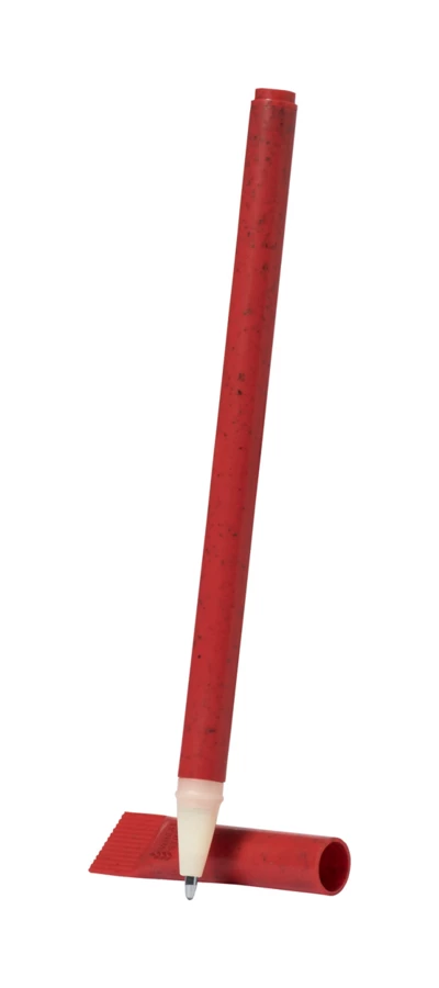 Ekologiczny plastikowy długopis ze słomy pszenicznej z dopasowaną kolorystycznie skuwką. Z niebieskim wkładem.