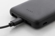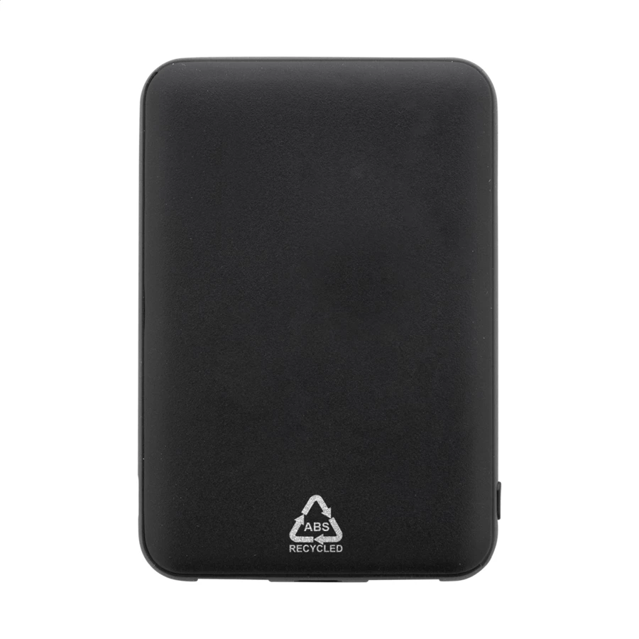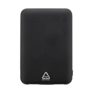 Powerbank z recyklingowanego ABS o pojemności 5000 mAh. Z 2 portami ładowania USB i 1 portem USB-C. Porty wejściowe micro USB i USB-C. W zestawie kabel do ładowania USB.