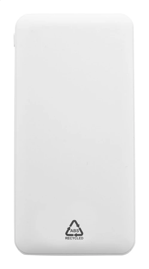 Power bank z recyklingu pozyskanego z plastiku ABS z baterią 10000 mAh. Z 2 portami ładowania USB i 1 portem USB-C. Porty wejściowe Micro USB i USB-C. Zawiera kabel USB.