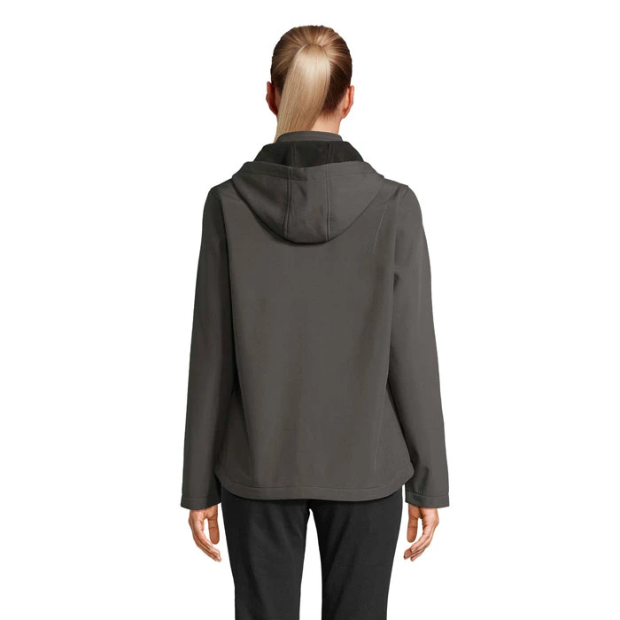 SOL'S RACE HOODED WOMEN, damska kurtka softshellowa z kapturem, 100% poliester z recyklingu Podszewka polarowa: 100% poliester z recyklingu 2 warstwy, zapięcie z przodu i kieszenie boczne z czarnym nylonowym zamkiem błyskawicznym Czarne ściągacze Kaptur ze sznurkiem Nieco dłuższy tył. W celu dopasowania rozmiaru należy zapoznać się z tabelą rozmiarów w sekcji dokumentacji produktu.