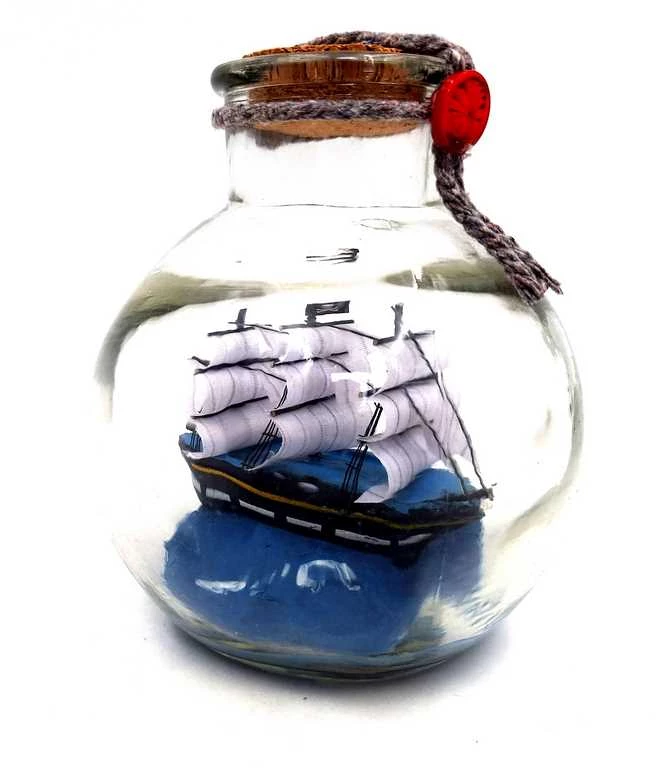 Miniaturowy żaglowiec w butelce to nie tylko ozdoba, ale również stylowy i gustowny gadżet na biurko. Klasyczna dekoracja inspirowana klasycznymi motywami marynistycznymi. Uzupełni wystrój salonu, biura lub gabinetu. Kompaktowy rozmiar sprawia, że bez problemu zmieści się na półce, komodzie czy biurku.