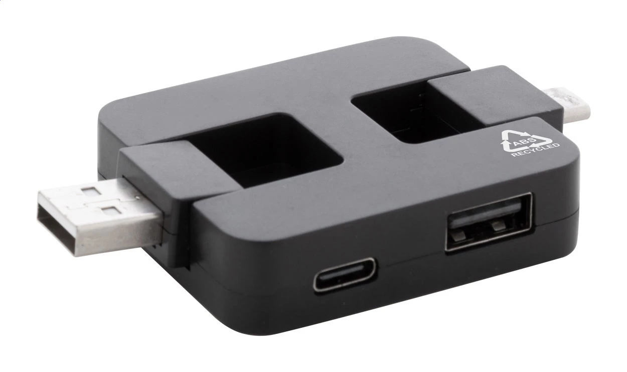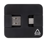 Hub USB z tworzywa ABS pochodzącego z recyklingu, z 2 portami USB i 2 portami USB-C. Ze składanymi złączami USB i USB-C. USB 2.0.