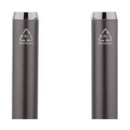 Zestaw piśmienniczy z aluminium pochodzącego z recyklingu, składający się pióra kulkowego i długopisu w pudełku upominkowym z czarnego papieru. Z niebieskim wkładem.