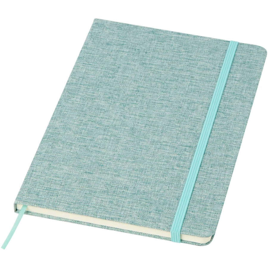 Notatnik A5 w twardej oprawie wykonany z bawełny pochodzącej z recyklingu, z 80 kartkami w linie z papieru o gramaturze papieru 70 g/m². Notatnik posiada elastyczne zamknięcie, wstążkę i zaokrąglone rogi.