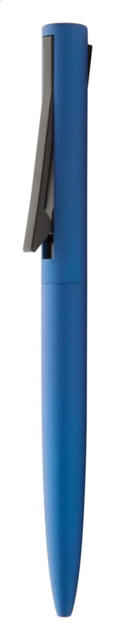 Długopis w metalicznym, matowym kolorze z aluminiowym korpusem i specjalnym mechanizmem klipu. Zawiera niebieski wkład.