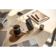Przenośny głośnik wykonany z ABS pochodzącego z recyklingu (100% rABS). Dzięki bezprzewodowej transmisji BT 5'3 posiada czytnik kart microSD, wyjście AUX 3.5 mm i automatyczne odtwarzanie przez port USB-A. Moc dźwięku 3 W i bateria 400 mAh zapewniają przybliżony czas pracy na baterii wynoszący 4h30. Umożliwia odbieranie połączeń dzięki wbudowanemu mikrofonowi, sterowanie głośnością i listą odtwarzania urządzenia mobilnego. W zestawie kabel USB-C do ładowania. Dostarczany w pudełku prezentowym z papieru kraft pochodzącego z recyklingu, które można ponownie wykorzystać jako uchwyt na smartfon. Jeśli nie wybrano personalizacji, kratka jest dostarczana luzem w pudełku upominkowym. Po przymocowaniu do głośnika kratki nie można ponownie zdjąć. Ponieważ produkt jest wykonany z naturalnych materiałów, kolor produktu oraz wynik drukowania mogą się różnić w zależności od produktu. ø60 x 52 mm | Box: 65 x 63 x 75 mm