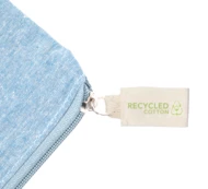 Zapinana na zamek kosmetyczka z bawełny pochodzącej z recyklingu. Z charakterystyczną etykietą z bawełny pochodzącej z recyklingu.