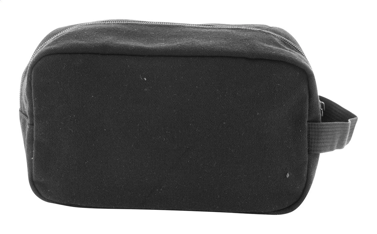 Kosmetyczka z płótna z recyklingu z dwoma przegrodami na suwak i uchwytem do przenoszenia. 70% bawełny z recyklingu i 30% poliestru RPET. Z charakterystyczną metką z bawełny z recyklingu.