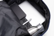 Plecak z płótna z recyklingu z główną komorą zapinaną na zamek, wyściełaną przegrodą na laptopa (15"), 2 kieszeniami z przodu zapinanymi na zamek, kieszeniami bocznymi, paskiem do noszenia na walizce, wyściełanymi plecami i paskami na ramię. Wykonany w 70% z bawełny z recyklingu i w 30% z poliestru RPET. Z charakterystyczną metką z bawełny z recyklingu.