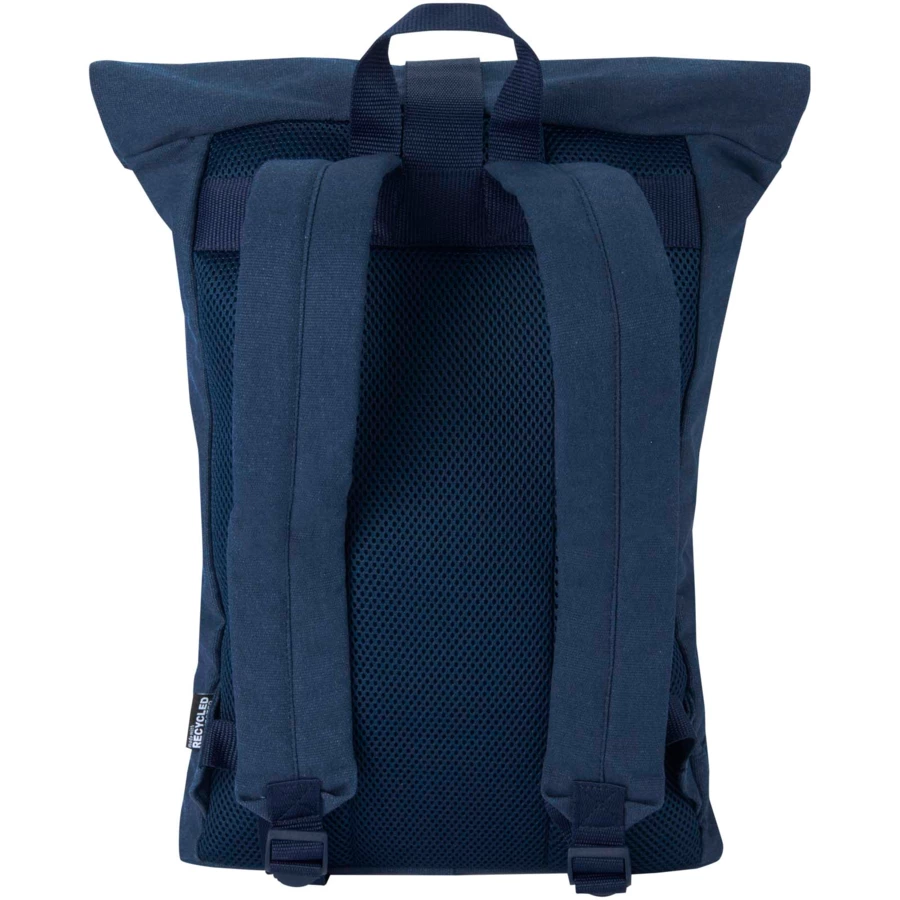 Recanvas plecak z certyfikowanego przez GRS, wodoodpornego płótna pochodzącego z recyklingu, z podszewką z tworzywa RPET w dopasowanym kolorze z rolowanym zapięciem został zaprojektowany z myślą o wszechstronnych zastosowaniach i codziennym użytkowaniu. Posiada wyściełaną komorę na laptopy o przekątnej do 14 cali, przednią kieszeń zapinaną na zamek błyskawiczny, oddychające siatkowe plecy oraz regulowane paski na ramię zapewniające wygodę. Zapięcie typu roll-top rozszerza się, dopasowując się do Twojego sprzętu, dzięki czemu plecak idealnie nadaje się do dojazdów do pracy, podróży lub aktywności na świeżym powietrzu. Pojemność: 16 litrów.