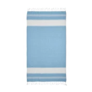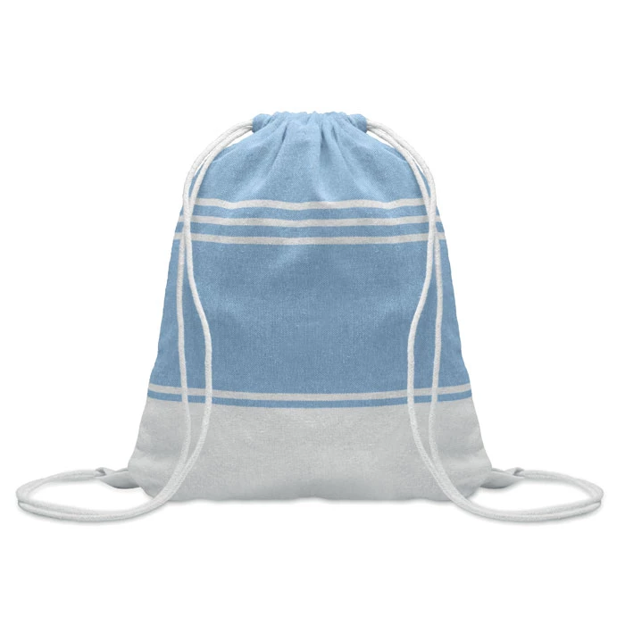 Zestaw z ręcznikiem plażowym hammam z workiem ze sznurkiem. 70% bawełna z recyklingu i 30% poliester z recyklingu 180 gr/m². 90x160 cm.
