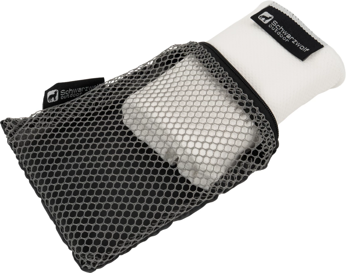 Ręcznik sportowy Schwarzowolf wykonany z szybkoschnącego materiału: poliester 55%, poliamid 45%. Pakowany w etui z siateczki - 29 x 10 x 1 cm.