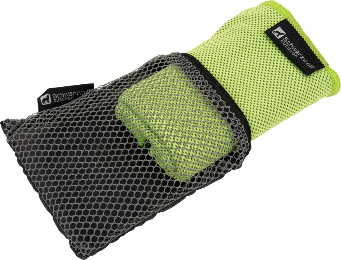 Ręcznik sportowy Schwarzowolf wykonany z szybkoschnącego materiału: poliester 55%, poliamid 45%. Pakowany w etui z siateczki - 14 x 10 x 1 cm.