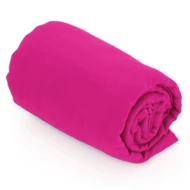Ręcznik w czarnym, siateczkowym pokrowcu zamykanym na sznurek z klipem, produkt wykonany z mikrofibry o gramaturze 200 g/m2