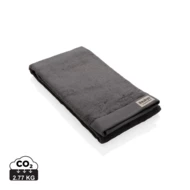 Ręcznik, miękki i gruby, wykonany z mieszanki 70% bawełny z certyfikatem OEKO-TEX (w procesie produkcji nie są wykorzystane żadne szkodliwe substancje lub barwniki) oraz w 30% z bawełny z recyklingu, dzięki zastosowaniu technologii śledzącej AWARE™ wykorzystane włókna są identyfikowalne z pochodzenia, 2% wpływów z każdego sprzedanego produktu jest przekazywane na rzecz Water.org, można prać w pralce (wyprodukowany w Europie / made in Europe)
