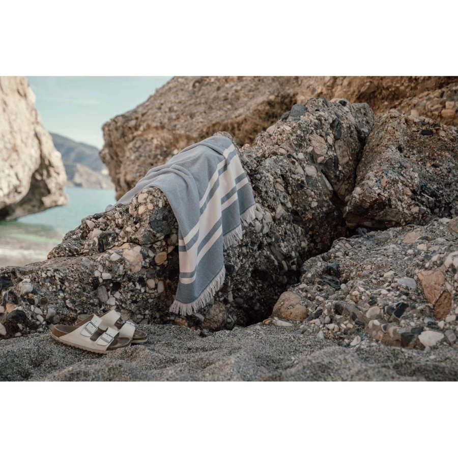 Ręcznik VINGA Tolo wykonany z 75% bawełny i 25% poliestru, dwie różne tekstury: frotte i gładka, szybkoschnące