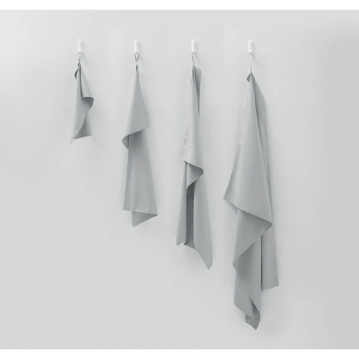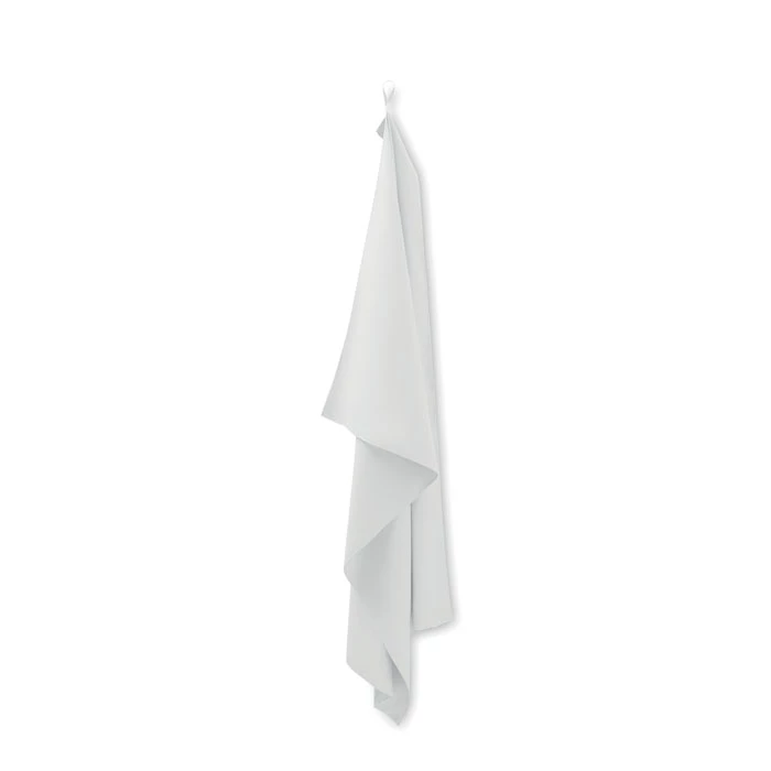 Ręcznik z mikrofibry wykonany w 90% z poliestru i w 10% z poliamidu z elastyczną pętelką na wieszak. Lekki i szybkoschnący.