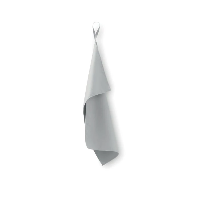 Ręcznik z mikrofibry wykonany w 90% z poliestru i 10% z poliamidu z elastycznym uchwytem. Lekki i szybkoschnący.