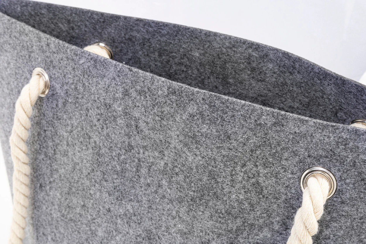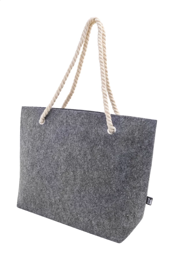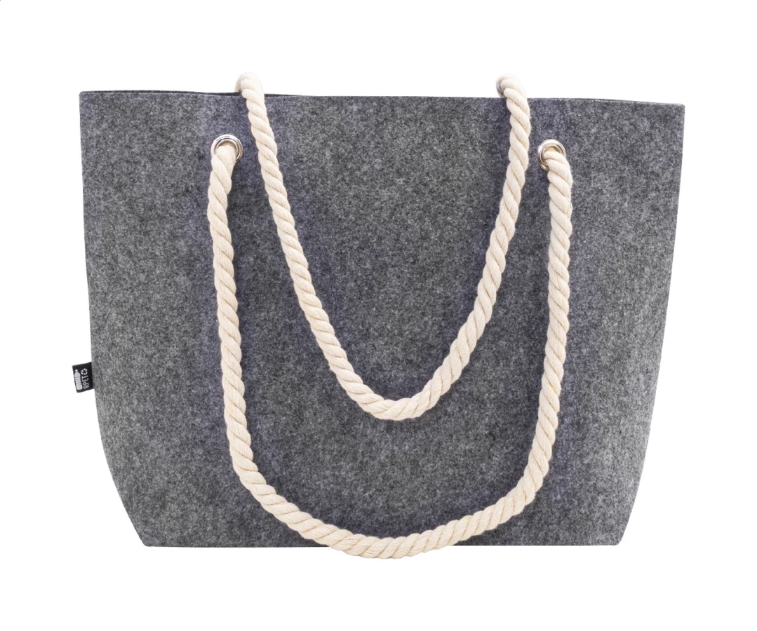 Torba plażowa lub na zakupy z filcu RPET z uchwytami z bawełnianego sznurka i klinem u dołu. Z charakterystyczną metką RPET.