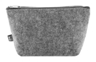 Zapinana na suwak kosmetyczka z filcu RPET. Z charakterystyczną metką RPET.