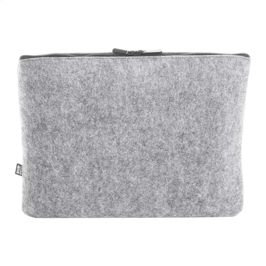 Torba na laptopa z filcu RPET z kieszenią na suwak i kieszenią z przodu. Pasuje do laptopów do 15". Z charakterystyczną metką RPET.