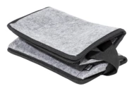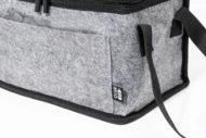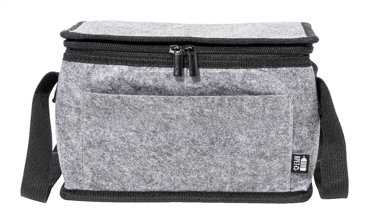 Zapinana na zamek torba termiczna z filcu RPET, z aluminiową wyściółką, kieszenią z przodu i uchwytami bocznymi. Z charakterystyczną metką RPET.
