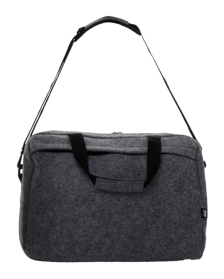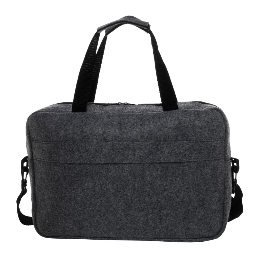 Torba na dokumenty z filcu RPET z główną kieszenią na suwak i kieszenią z przodu. Z komorą na laptopa (15"), paskiem na walizkę i regulowanym paskiem na ramię. Z charakterystyczną metką RPET.