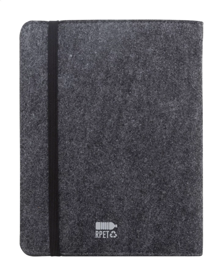 Teczka na dokumenty z filcu RPET w formacie A5 z przednią i wieloma wewnętrznymi kieszeniami organizacyjnymi. Z 20 kartkami w linie z papieru pochodzącego z recyklingu.