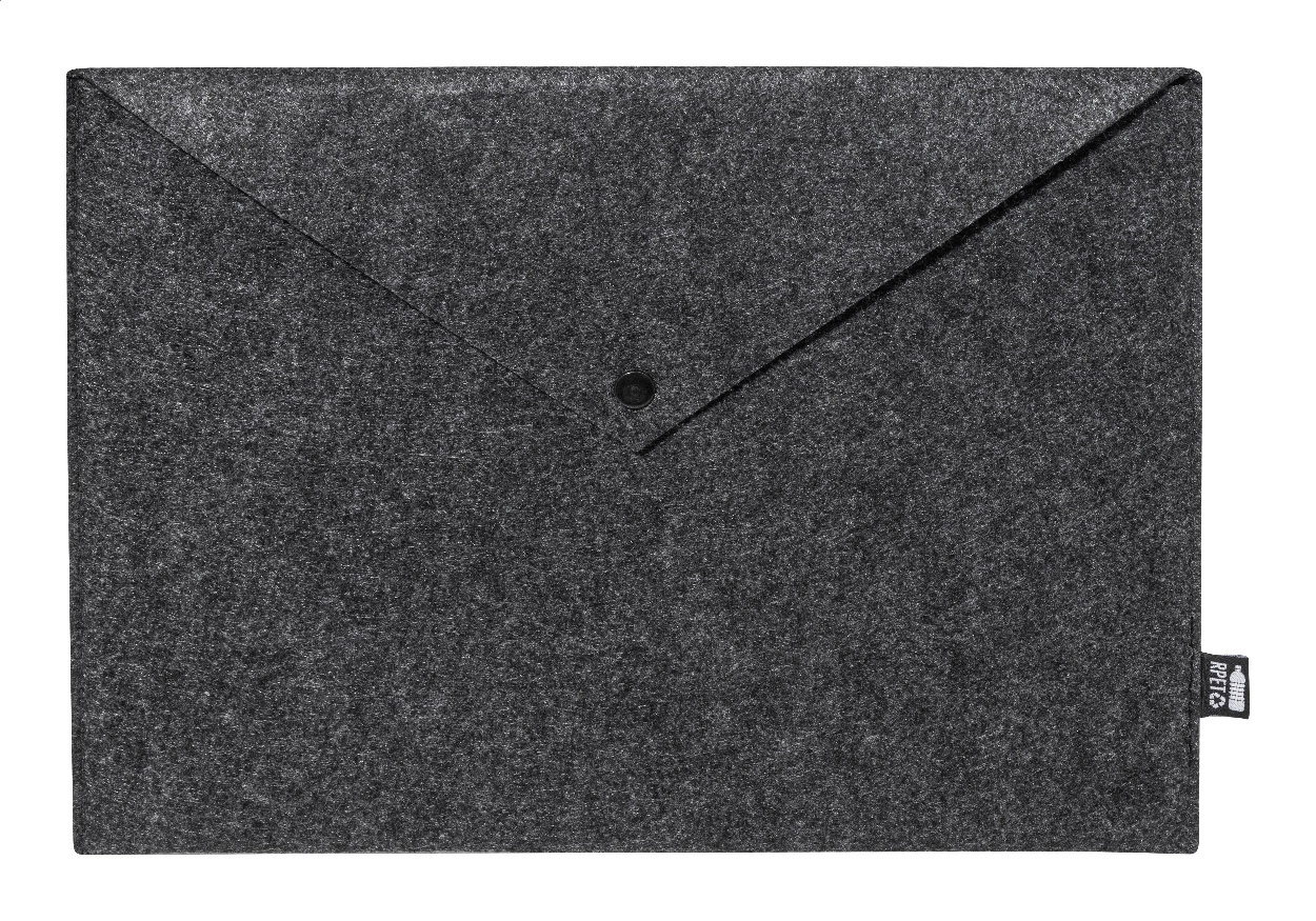 Filcowa torba na dokumenty lub laptop z RPET, zapinana na guzik. Pasuje do laptopów o przekątnej do 13 cali. Z charakterystyczną metką RPET.