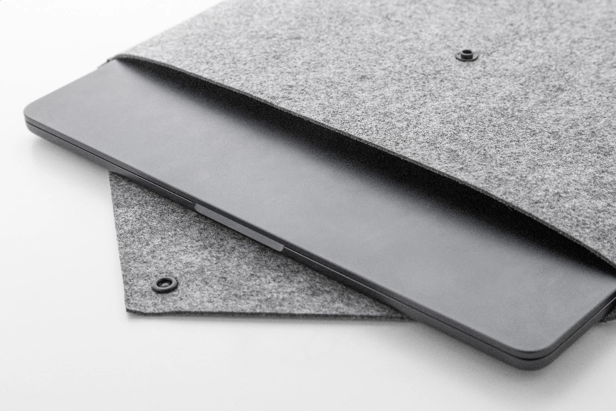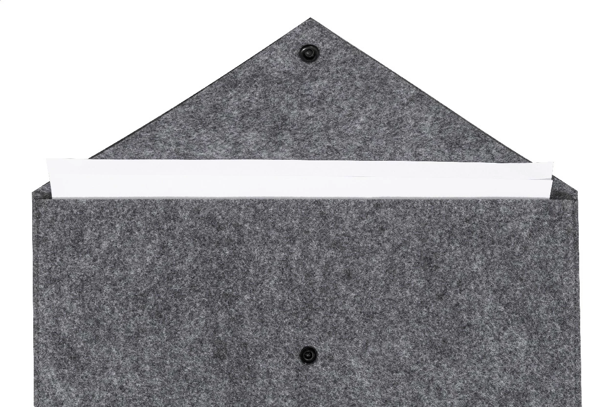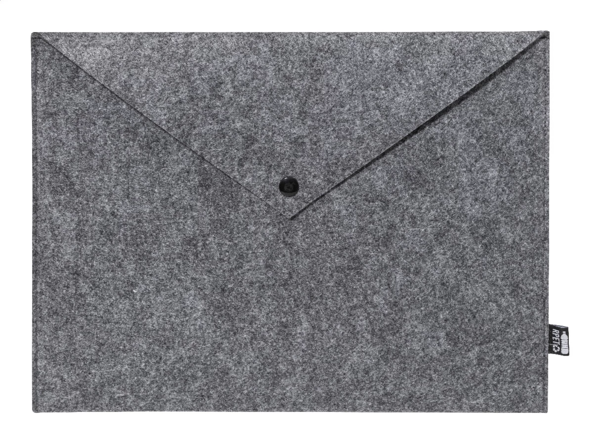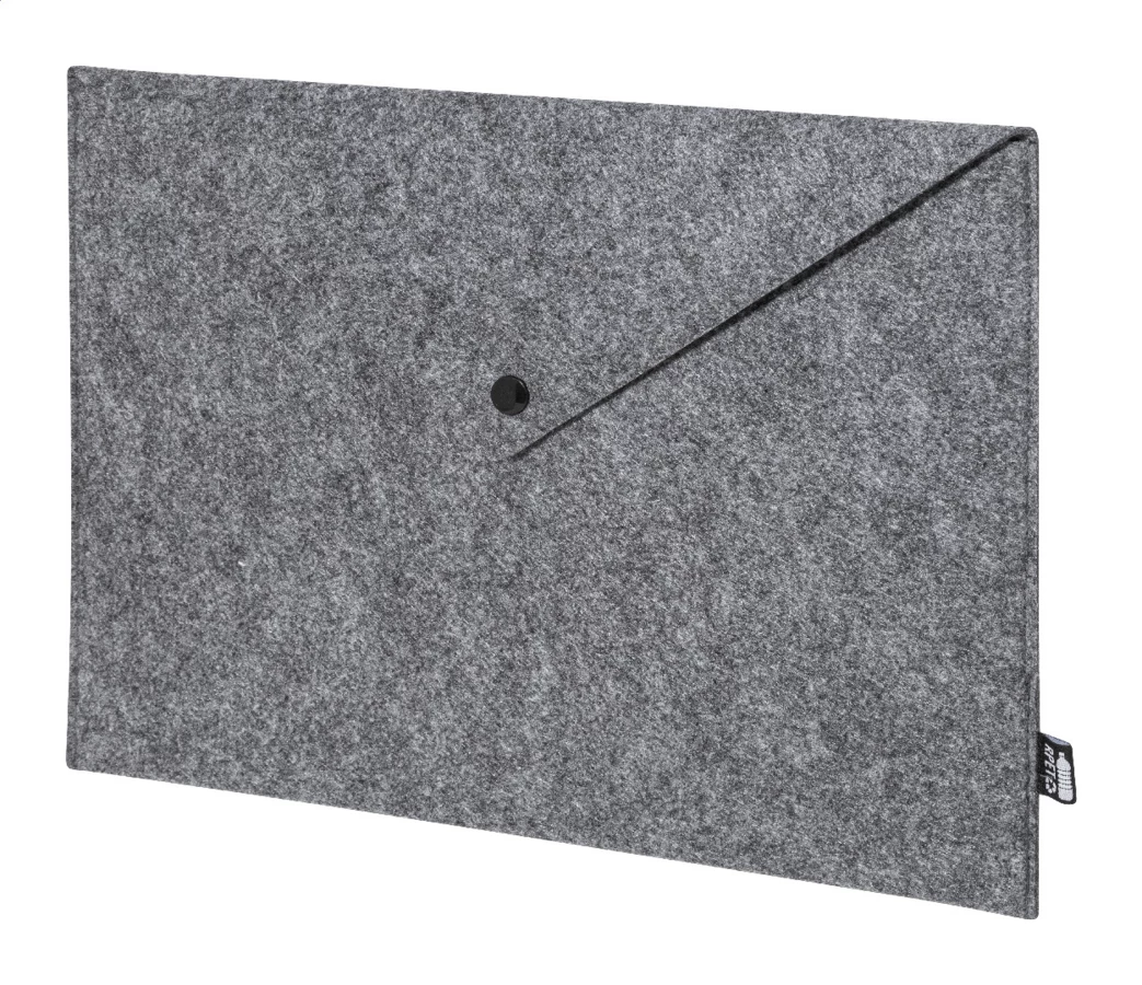 Filcowa torba na dokumenty lub laptop z RPET, zapinana na guzik. Pasuje do laptopów o przekątnej do 13 cali. Z charakterystyczną metką RPET.
