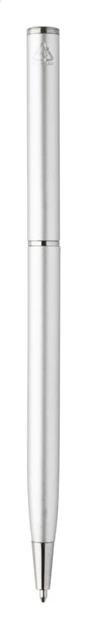 Długopis z przekręcany z aluminium z recyklingu z chromowanymi elementami. Z niebieskim wkładem.