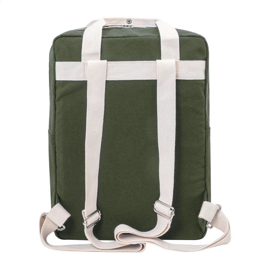 Plecak z płótna z recyklingu z główną komorą zapinaną na zamek, wyściełaną przegrodą na laptopa (13") i przednią kieszenią zapinaną na rzep. Wykonany w 70% z bawełny z recyklingu i w 30% z poliestru RPET. Z charakterystyczną metką z bawełny z recyklingu.