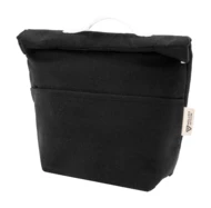 Torba termiczna z płótna z recyklingu z rolowaną klapą, kieszenią z przodu, aluminiową wyściółką i zapięciem na rzep. Wykonana w 70% z bawełny z recyklingu i w 30% z poliestru RPET. Z charakterystyczną metką z bawełny z recyklingu.
