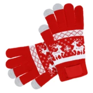 Rękawiczki zimowe ze świątecznym wzorem, posiadają 3 specjalne końcówki umożliwiające obsługę ekranów dotykowych (kciuk, palec wskazujący oraz środkowy) oraz specjalną etykietę do znakowania, uniwersalny rozmiar dla dorosłych, produkt wykonany z akrylu