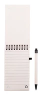 Notes na spirali z kartonu po mleku z recyklingu, z twardą okładką i 70 kartkami w linie. Z pasującymi kolorami spiralnymi pierścieniami, gumowym paskiem i uchwytem na długopis. Zawiera długopis z tworzywa ABS z recyklingu z niebieskim wkładem. Rozmiar A6.