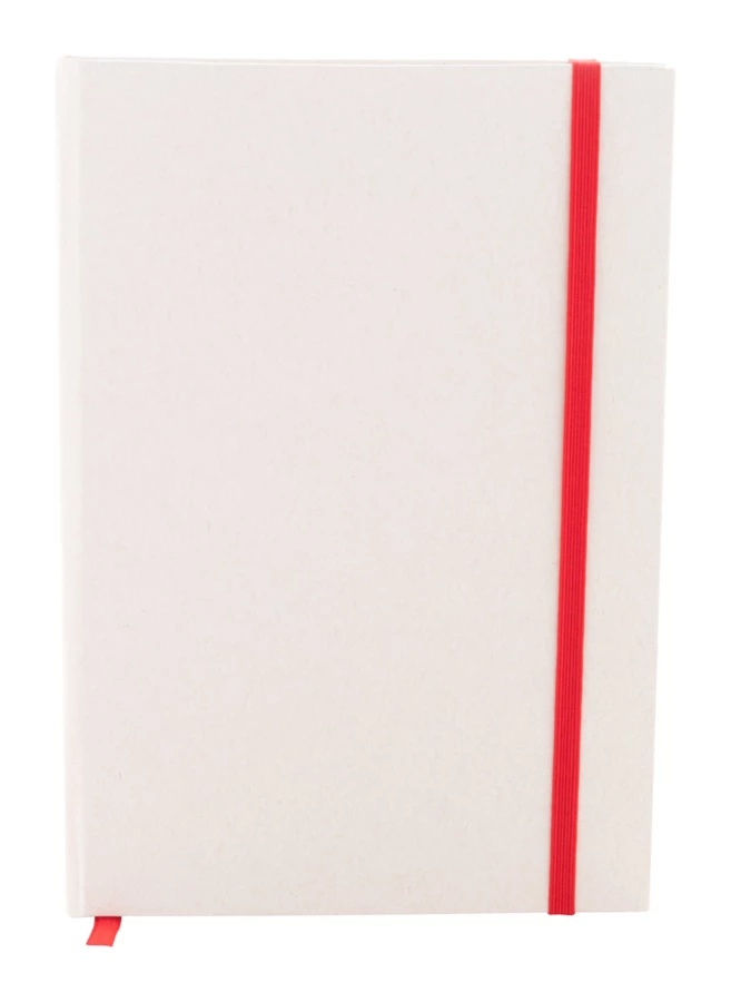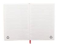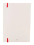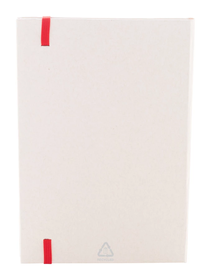 Notes z papieru z recyklingowanego kartonu po mleku, z twardą okładką, 80 kartkami w linie i dopasowaną kolorystycznie gumką. Rozmiar A5.