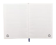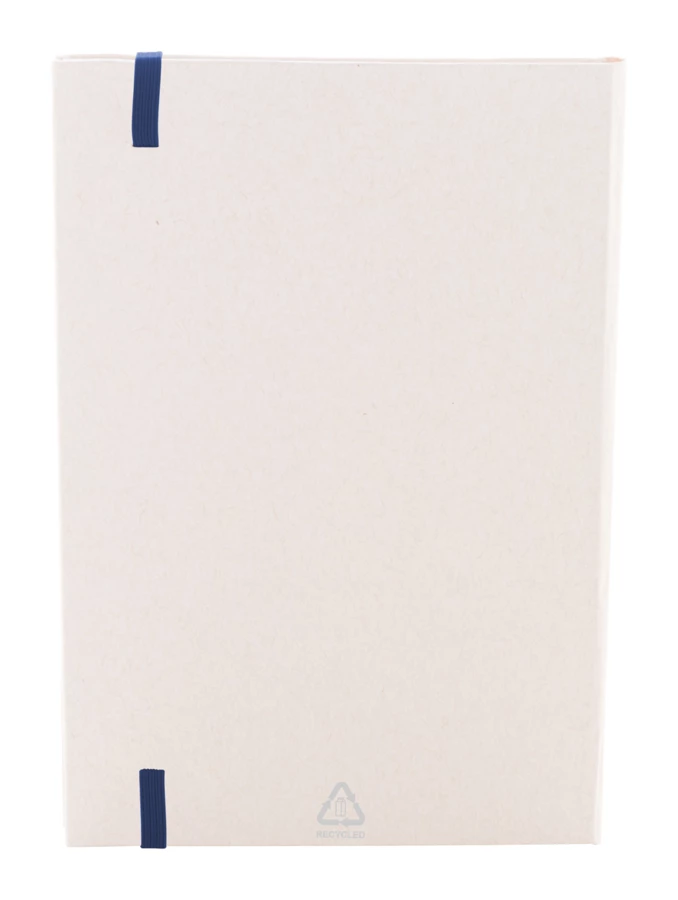 Notes z papieru z recyklingowanego kartonu po mleku, z twardą okładką, 80 kartkami w linie i dopasowaną kolorystycznie gumką. Rozmiar A5.