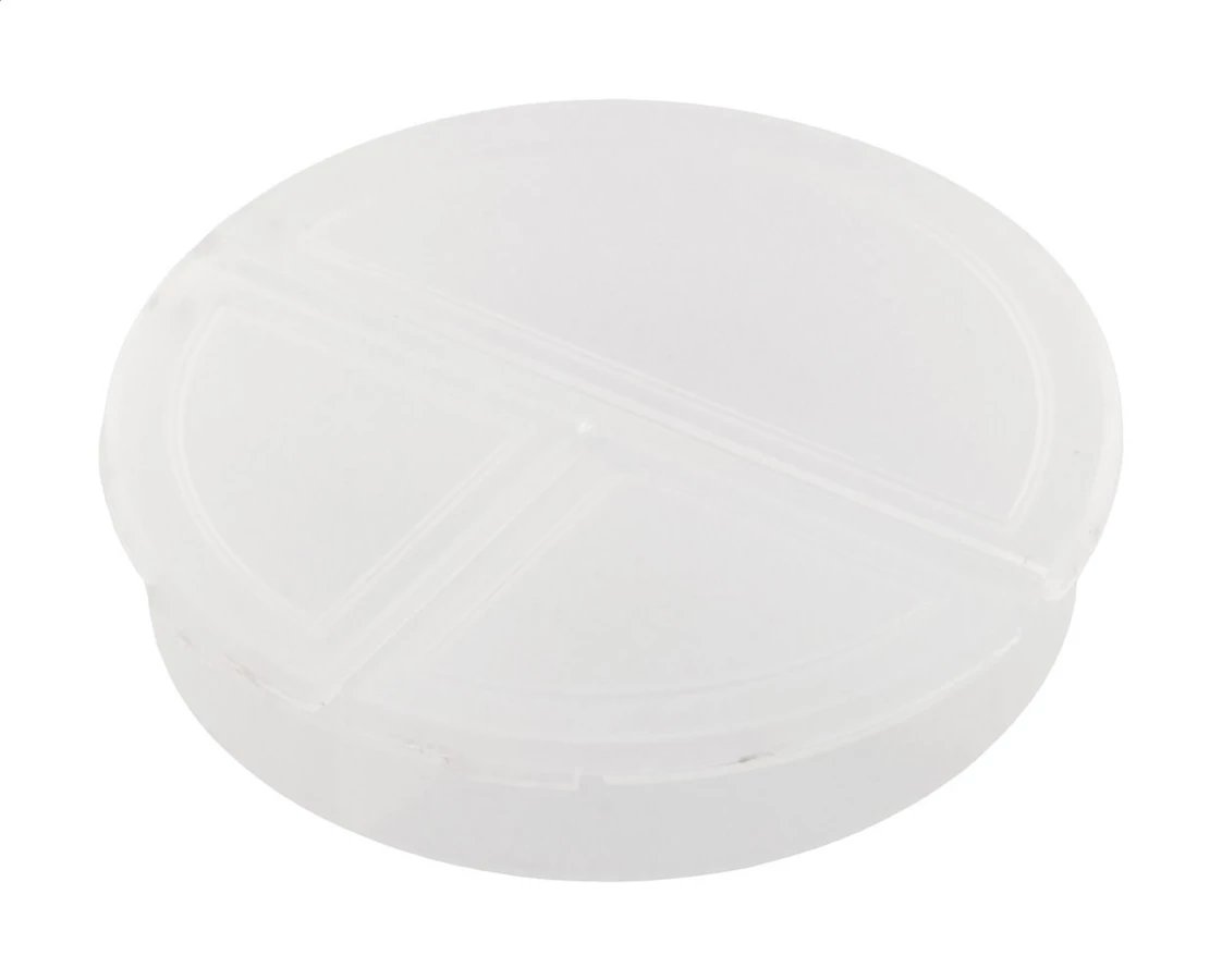 Pudełko na tabletki z tworzywa PP pochodzącego z recyklingu, z 3 przegródkami.